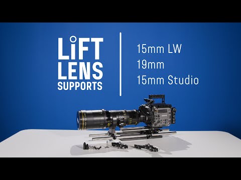 LiFT Lens Support (15mm LW) attaches to 15mm rods in lightweight spacing (60mm apart center to center) and supports lenses with a 3/8-16 or 1/4-20 support foot.