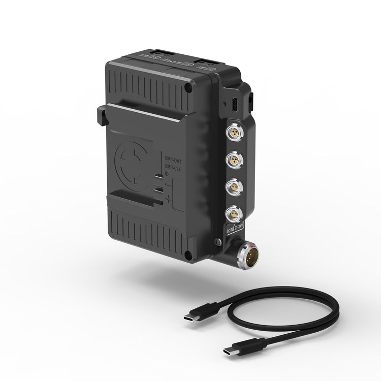 Hot-swap between on-board battery and 8pin LEMO compatible connector without losing camera or accessory power. When both sources are connected, the DC INPUT takes priority down to 22.8V at which point, the DB-12 will switch to an onboard battery.