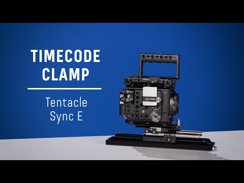 Tentacle Sync E Clamp attaches to an ARRI 1/4-20 with locating pins adjacent using a captive thumbscrew. The clamp can be configured in several ways depending on the desired position, and the locating pins can be removed if needed.