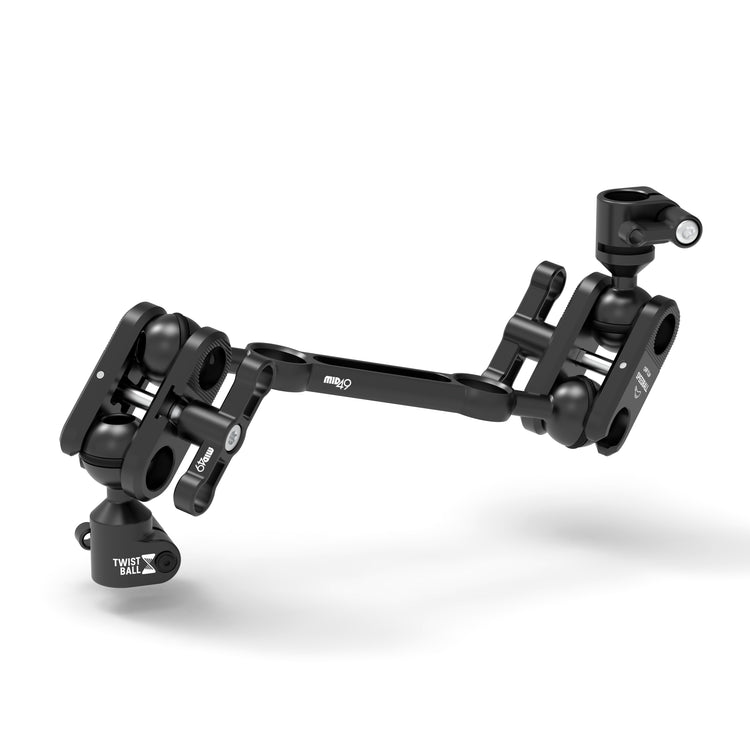 TWIST Ball Monitor Arm 6 Inch (No Spuds) is an articulating arm that accepts TWIST mounting spuds and utilizes a variable friction 15mm clamp. With the variable friction design, you can grab and twist the attached spud without loosening a thumbscrew.